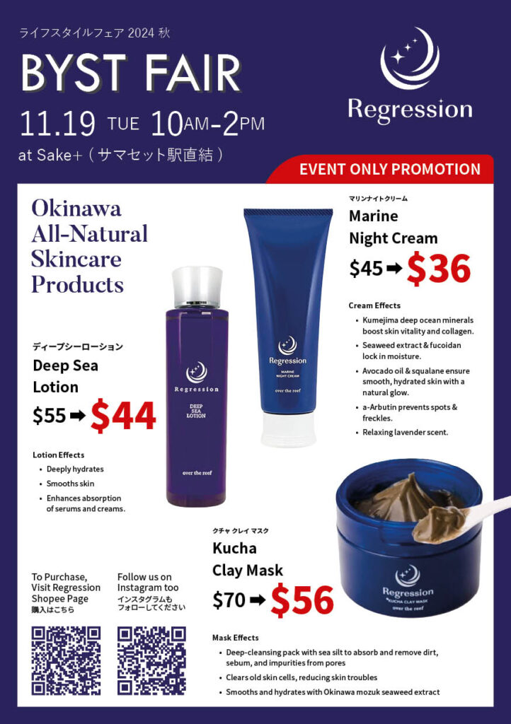 沖縄発スキンケアブランドRegressionのシンガポール市場参入において、インフルエンサーおよびPR施策を軸とした立ち上げ支援を行いました。クローズド型の体験会と一般向けイベントを組み合わせることで、認知獲得と実市場での反応検証を同時に実現しました。